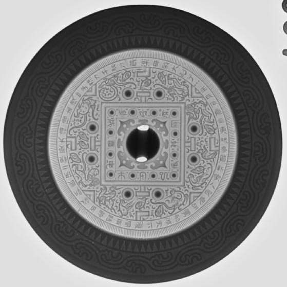 十二支が文字で記された鏡。当時の宇宙観の中に十二支が配置され、鏡に方位を与えている。