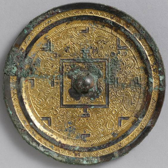 2 鍍金方格規矩獣紋鏡