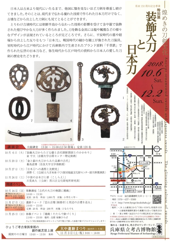 このページは兵庫県立 考古博物館の秋季特別展「装飾大刀と日本刀-煌めきの刀剣文化-」に関するページです。