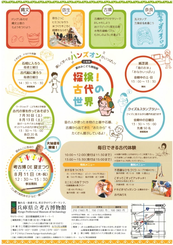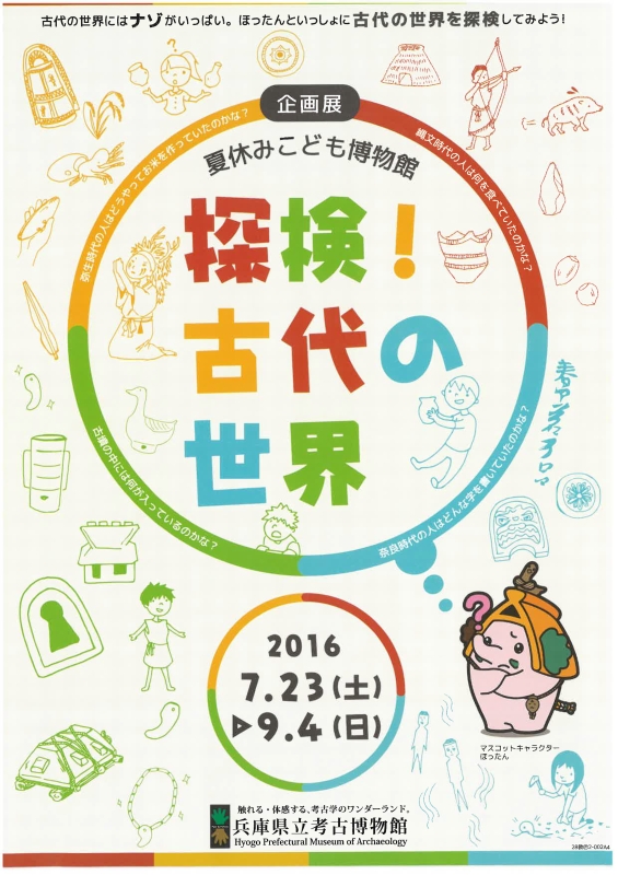 このページは兵庫県立 考古博物館の夏季企画展「夏休みこども博物館 探検!古代の世界」に関するページです。