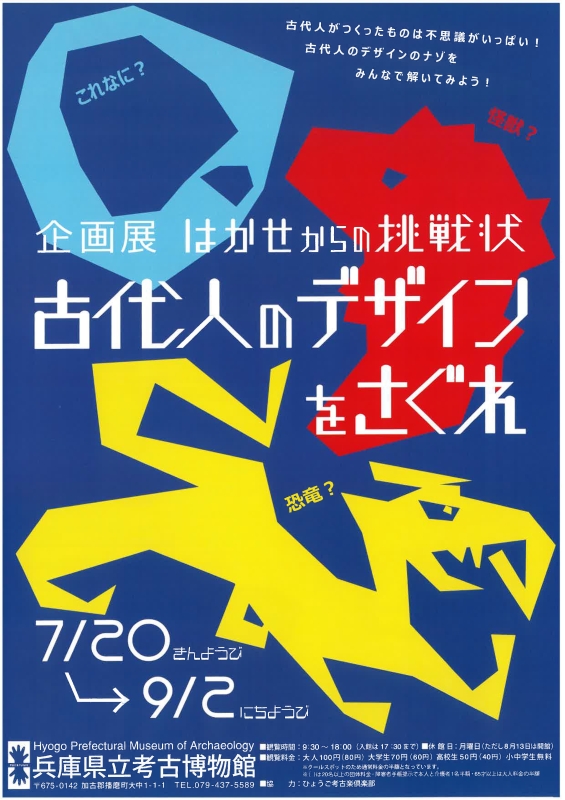 このページは兵庫県立 考古博物館の夏季企画展「はかせからの挑戦状 古代人のデザインをさぐれ」に関するページです。