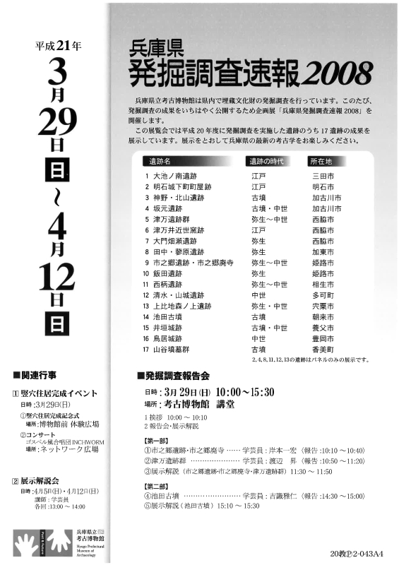 このページは兵庫県立 考古博物館の春季企画展「兵庫県発掘調査速報2008」に関するページです。