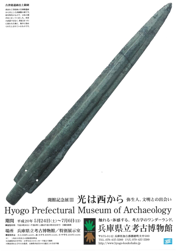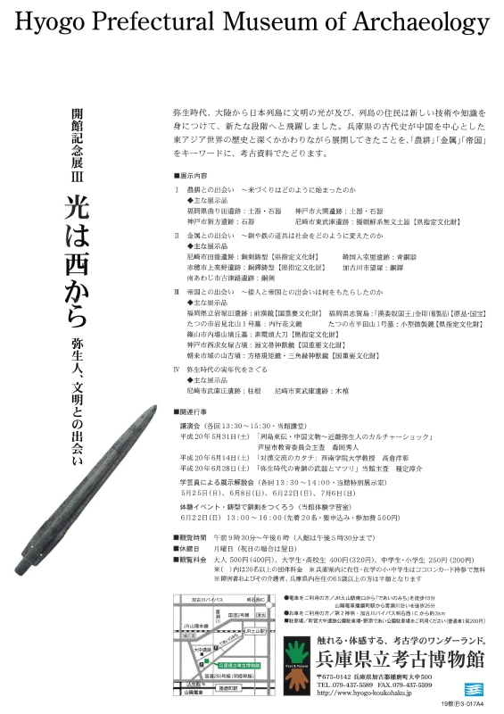 このページは兵庫県立 考古博物館の開館記念展Ⅲ「光は西からー弥生人、文明との出会いー」に関するページです。