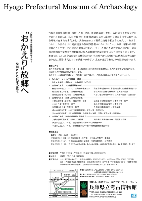 このページは兵庫県立 考古博物館の開館記念展Ⅱ「おかえり故郷へ~発掘された兵庫の遺宝~」に関するページです。