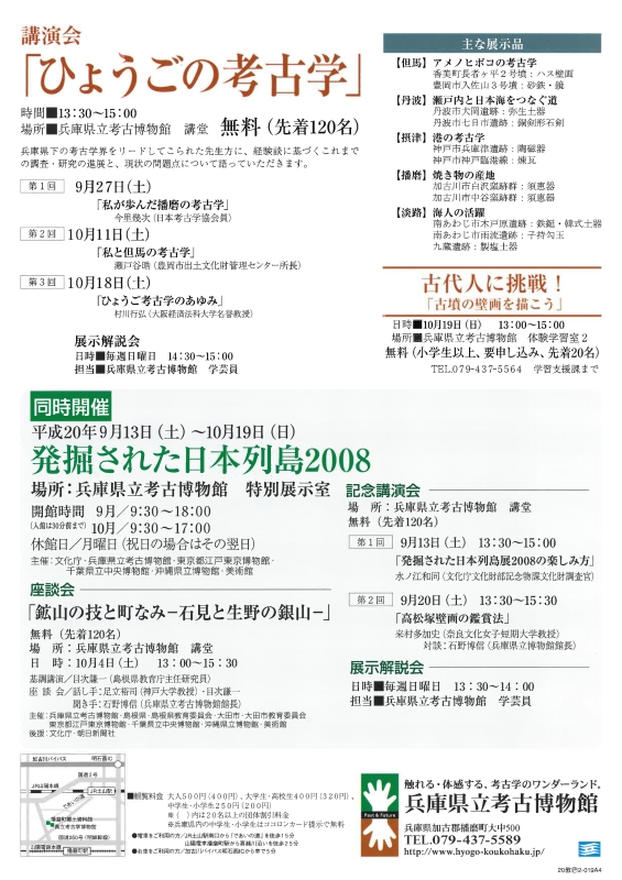 開館一周年記念展、発掘された日本列島2008地域展「ひょうご五ヵ国の考古学~近年の調査成果を中心に~」
