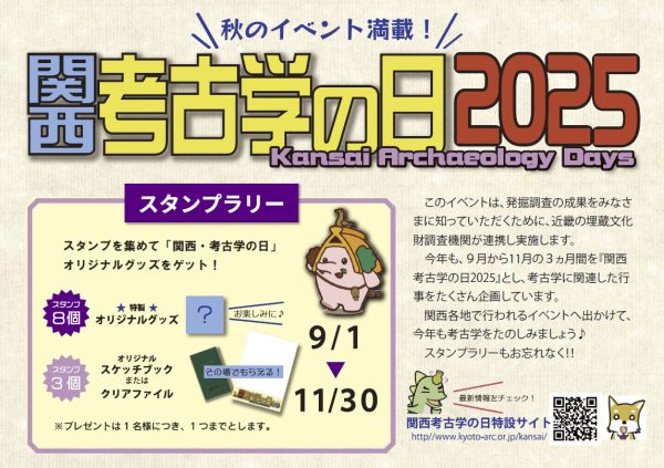 今年も9月から11月の三か月間を『関西考古学の日2025』とし、考古学に関連した行事をたくさん企画しています。